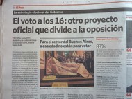 Comme toujours en temps de crise, la situation politique se durcit et l'Argentine, toujours hantée par ses vieux démons, flirte toujours avec la limite de la droitisation à outrance et la dérive policière... La Présidente, en danger électoral, veut faire voter les 16-18 ans !