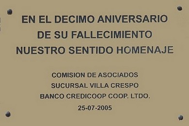 Et c'est aussi tout un quartier qui s'est mobilisé pour associer son nom à la station de métro Malabia, et pour que soit érigé un monument à l'extérieur, à l'intersection de Corrientes, Scalabrini Ortiz et Luiz maria Drago dans le quartier de Villa Crespo.