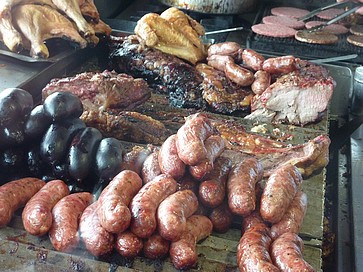 Faire un voyage en Argentine est riche en découverte, mais Buenos Aires n'est pas vraiment un grand lieu de pèlerinage culinaire. La viande est excellente, quoique souvent trop cuite, le poisson, rare, cher, et mal préparé, et les légumes se limitent le plus souvent aux patatas fritas. Il ya certes les tamales et autres plats typiques, mais tout le monde n'aime pas, et beaucoup se rabattent sur les restaurants italiens. Personnellement, la viande je ne m'en lasse pas, surtout avec du bon vin. Le soir je mange des empanadas, et je compense, pour le reste, avec les glaces dont je raffole... et le panqueque de manzana al rum: nul n'est parfait ! Quelques souvenirs :
