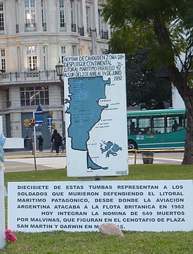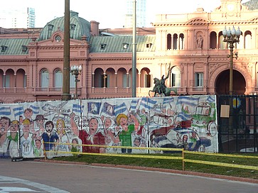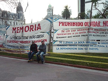 Inévitable photo du croiseur Belgrano : comme je l'avais remarqué lors de mon premier voyage, les plaies ouvertes par la guerre des Malouines, ne se sont pas refermées, loin de là. En continuant ma ballade à pied, et en passant devant la Casa Rosada, j'ai pu en avoir la confirmation sur les multiples banderoles qui fleurissaient sur la place, réclamant la reconnaissance envers les vétérans.
