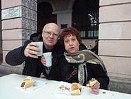 Deuxième passage à l'examen, une autre organisatrice de Milonga, à droite sur la photo avec Gilda, vient "m'essayer" à son tour, et m'invite à sa prochaine soirée. Le tout se déroule dans une ambiance sympathique et décontractée. Il parait que l'été, on peut danser dehors, je regrette de ne pouvoir y revenir à la belle saison. Une copine de Gilda, sur la fin, vient partager une tanda avec moi : premier tango tranquille, sur le dernier, un d'Arienzo endiablé, je lâche les chevaux : ma partenaire, Graziella répond au quart de tour et le tango se finit de façon magistrale. Graziella, un drôle de numéro et très bonne danseuse, sera... le chauffeur de taxi qui nous ramènera !