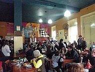 Beaucoup de changements encore cette année. Mon ami Hernan m'a dit que beaucoup de Milongas s'étaient ouvertes, surtout sur les extérieurs : je n'aurai pas le temps de les visiter. C'est encore Gilda qui me pilote et m'emmène dans une petite Milonga du Sud de Boedo : Sarraza. Métro, plus bus, plus vingt minutes à pied : nous y sommes. Peu de monde, et un peu de tout en termes de qualité de danse. L'ambiance est sympathique, l'organisation et l'invite traditionnelles : les hommes d'un côté, les femmes de l'autre et les couples et ceux qui déjeunent à un bout de la salle, Cabeceo de rigueur. Gilda qui a l'air un peu chez elle, et à qui j'avais confié que je trouvais ce type d'organisation pratique, mais totalement anti-conviviale, me garde avec elle... côté femme. Personne ne s'en formalise, privilège du touriste introduit par l'habituée. Bonne musique, bonne ambiance, Je danse avec Gilda en ouverture, puis avec une Canadienne d'origine Japonaise. Une copine de Gilda, et l'organisatrice de la soirée viennent "m'essayer" le temps d'une tanda (!).