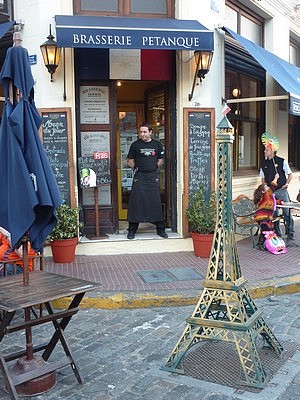 Le regret de ce voyage ? J'ai découvert en revenant de la Feria, en plein milieu de la Calle Defensa... une tour Eiffel ! Emblème d'un restaurant Français, tenu par un patron sympathique à l'accent bien de chez nous, l'établissement proposait, entre-autres spécialité Française, un confit de canard, le lendemain... jour de mon départ pour Iguazu. Ce sera pour un autre voyage, mais allez lui rendre visite, l'équipe est très sympa. Et puis une petite pétanque, arrosée d'un pastis à deux pas de la Feria de San Telmo, c'est peut-être sacrilège, mais reconnaissons le, peu banal ! La brasserie Pétanque, et son patron en Napoléon :